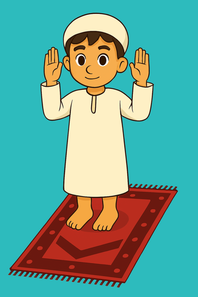 1 / Pour entrer en prière, on prononce la première formule de grandeur de son Seigneur – le Takbir en disant : Allahou Akbar – Allah est le Plus Grand – en fixant le regard vers l’endroit de la prosternation.