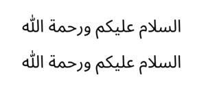 As-Salâmou ‘Alaykoum wa Rahmatoullâh – Que le salut et la miséricorde d’Allah soient sur vous. Ensuite vers la gauche: As-Salâmou ‘Alaykoum wa Rahmatoullâh – Que le salut et la miséricorde d’Allah soient sur vous.